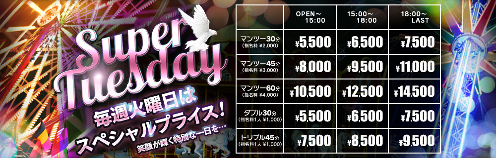 2025年最後の日曜日! 2025/12/28 2025年12月28日 本日のPICK UP GIRLNo.69 りほちゃん(24)T.162 B.93(G) W.56 H.7910:00~14:30 No.34 ねねちゃん (2)T.160 B.93(F) W.60 H.8910:00~15:00 本日も皆様のご来店を心よりお待ちしております。 新着情報一覧へ